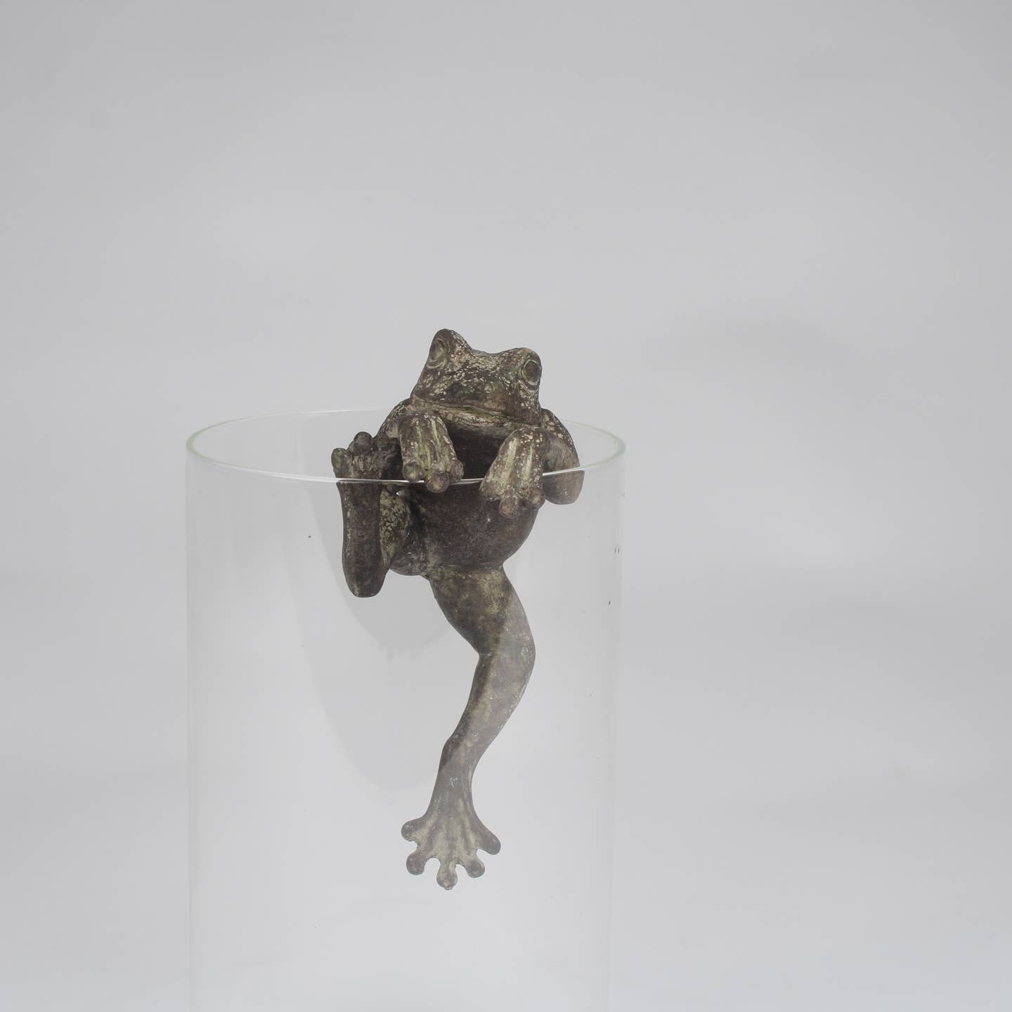 This resin frog is designed to hang off the edge of a plant pot and add a little charm to your garden.