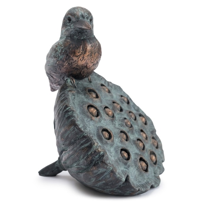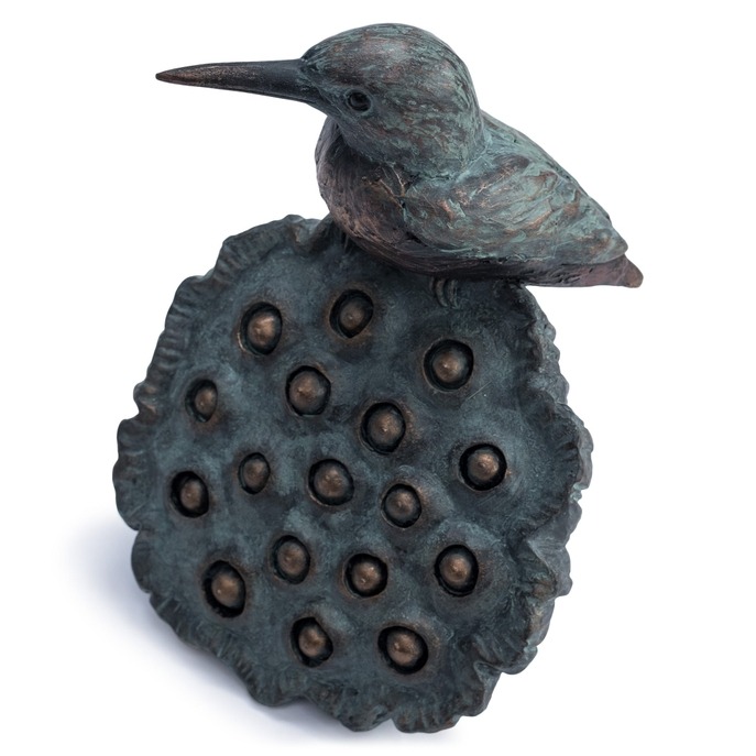 A Charming sculpture of a Kingfisher perched on a Lotus flower